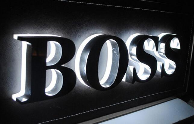 BOOS黑鈦金背發光字表麵黑鈦金材(cái)料金屬質感強烈,采用精(jīng)密的激光儀器工藝製作,產品細致如工藝(yì)品,背麵水(shuǐ)晶板透明度高,猶如水晶(jīng)般晶瑩剔透,透光率達89%,光線柔(róu)和不(bú)刺(cì)眼,是眾多高檔品牌門店(diàn)的首選標識。製(zhì)作工藝:黑鈦金字殼(ké)分別采用激光切割、激光焊接製作而成,水晶(jīng)底板經雕刻機雕刻、洗槽(cáo)、切(qiē)割三步製作,水晶底板裝有高亮LED軟燈帶,黑鈦金字殼與底板用有機膠水粘合(hé)密(mì)封即可。