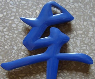 將文字製作好後,要進行拋光處理。然後進行噴漆。完成後進烘箱,固色。