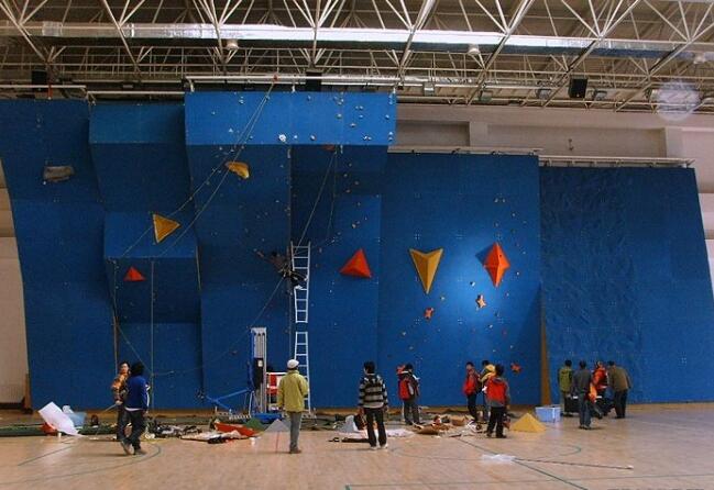 附牆式攀岩:是指在現有之牆壁麵 ( 是RC牆麵 )上架設鋼架結構及專用固定連結裝置,再將(jiāng)各式攀岩板固定在(zài)上麵,***後設定攀岩(yán)路線, 裝上攀岩支點即可。由於攀岩場主體是(shì)附著(zhe)於固定物上,因此大多不會移動,但是原則上擴充並無太大困難(nán)。 這(zhè)種模式也是目前相當通用的結構工法。但***主要的考(kǎo)量,是攀岩場結構體除了必須要能(néng)夠承受板(bǎn)麵結構的重(chóng)量,以及使用者墜落時產生之衝擊力量外,更要考慮及這些應力,是否會對原有之建築結構造成破壞。若壁麵設在室外則還(hái)需要額外考量天候所造成之影響,對腹(fù)地之需求則(zé)視岩場大小及外型變化狀況而定。
