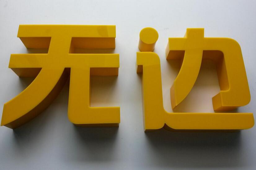 無邊(biān)字(zì)做外樹脂發光字的戶外解(jiě)決方案,其最(zuì)大(dà)的優點是和樹脂發光字一樣打光均勻,如不仔細觀察,難以從外型(xíng)上將其分辨。而在適用上,無邊字可以適(shì)用於惡劣的環(huán)境中,長期使(shǐ)用不褪色、不變色。因為(wéi)其(qí)材料並未使用多層樹脂(zhī),所以價格方麵也要比樹(shù)脂字便宜許多,因此(cǐ)更適合製(zhì)作中大型的戶外廣(guǎng)告標識,現今較常使用無邊字的中國移動、蘋果、三星等等。
