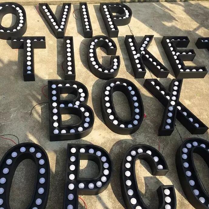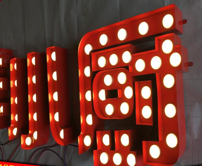 大(dà)燈泡字發光字led燈泡字招牌生鏽燈箱不(bú)鏽鋼穿(chuān)孔字點陣字(zì)製作。